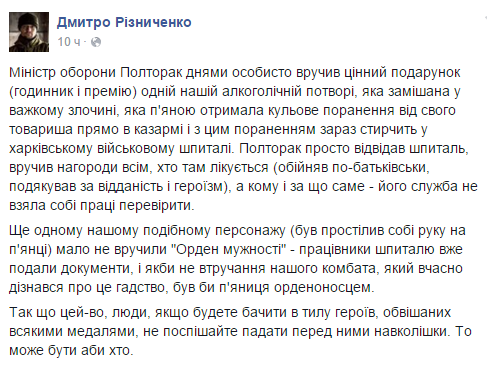 Так называемый *генерал Полторак* в госпитале наградил боевика * ВСУ*, который во время пьянки был ранен другим боевиком * ВСУ*. Хероям Сала!