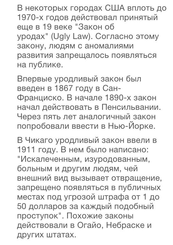 "Выбрасывайте ваших уродливых детей сюда". В США "закон об уродах" действовал до 1974 года. Исключительная нация