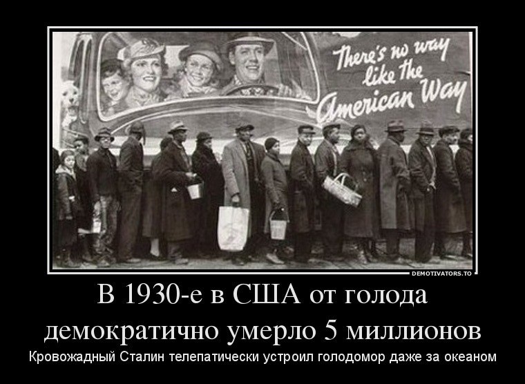 «Каждый шестой американский фермер попал под каток голодомора. Люди шли в никуда, лишенные земли, денег, своего родного дома, имущества – в охваченную массовой безработицей голодом и повальным бандитизмом неизвестность».