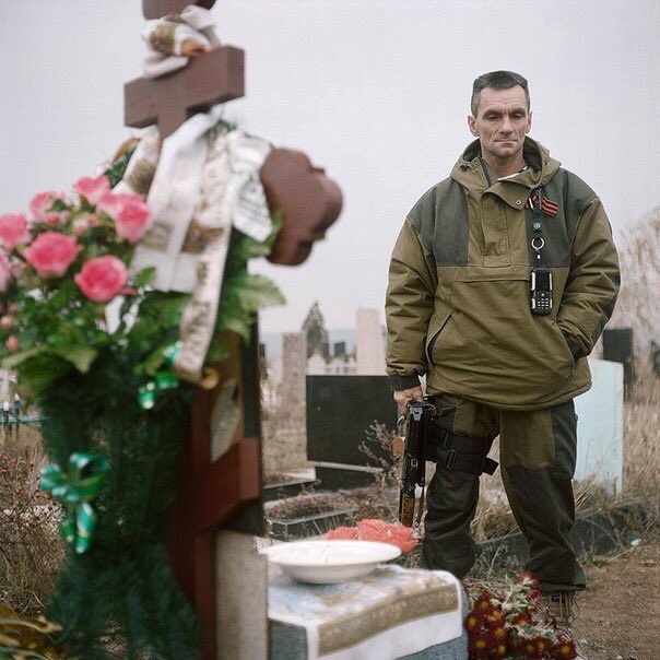 Глубокое фото.Мужская боль.Комендант Старобешево на могиле сына.Сына,которого запытали до смерти украинские террористы.